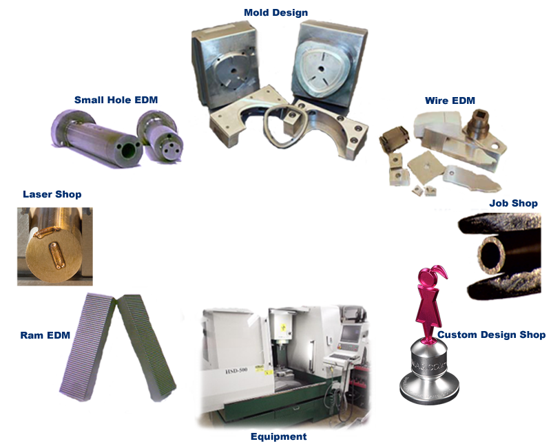 We do CNC, Laser Welding, Ram EDM, Wire EDM, Small Hole EDM, and more.